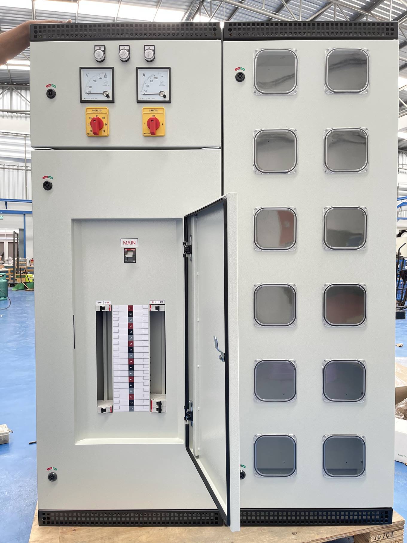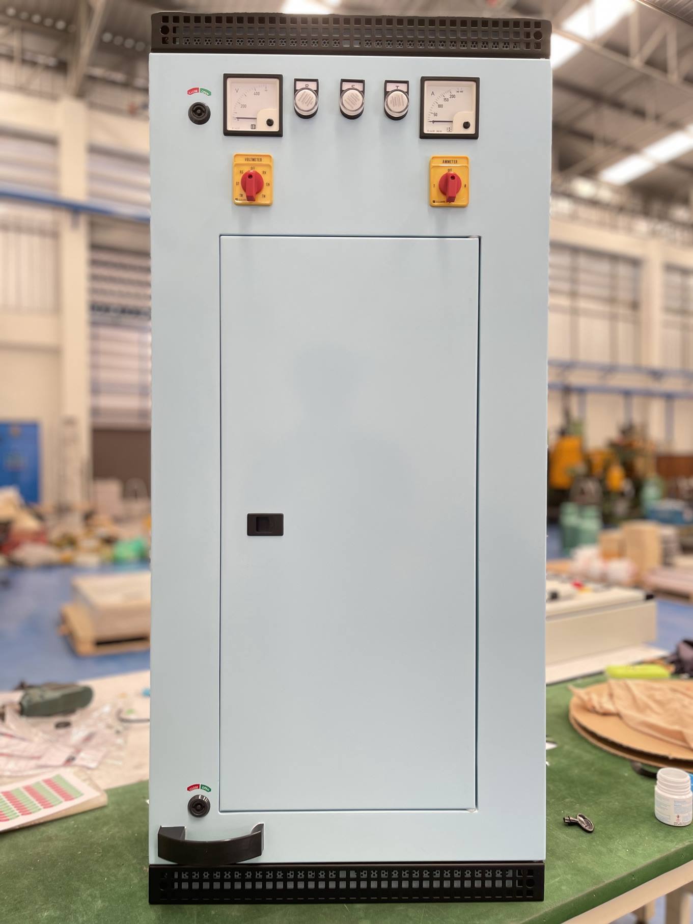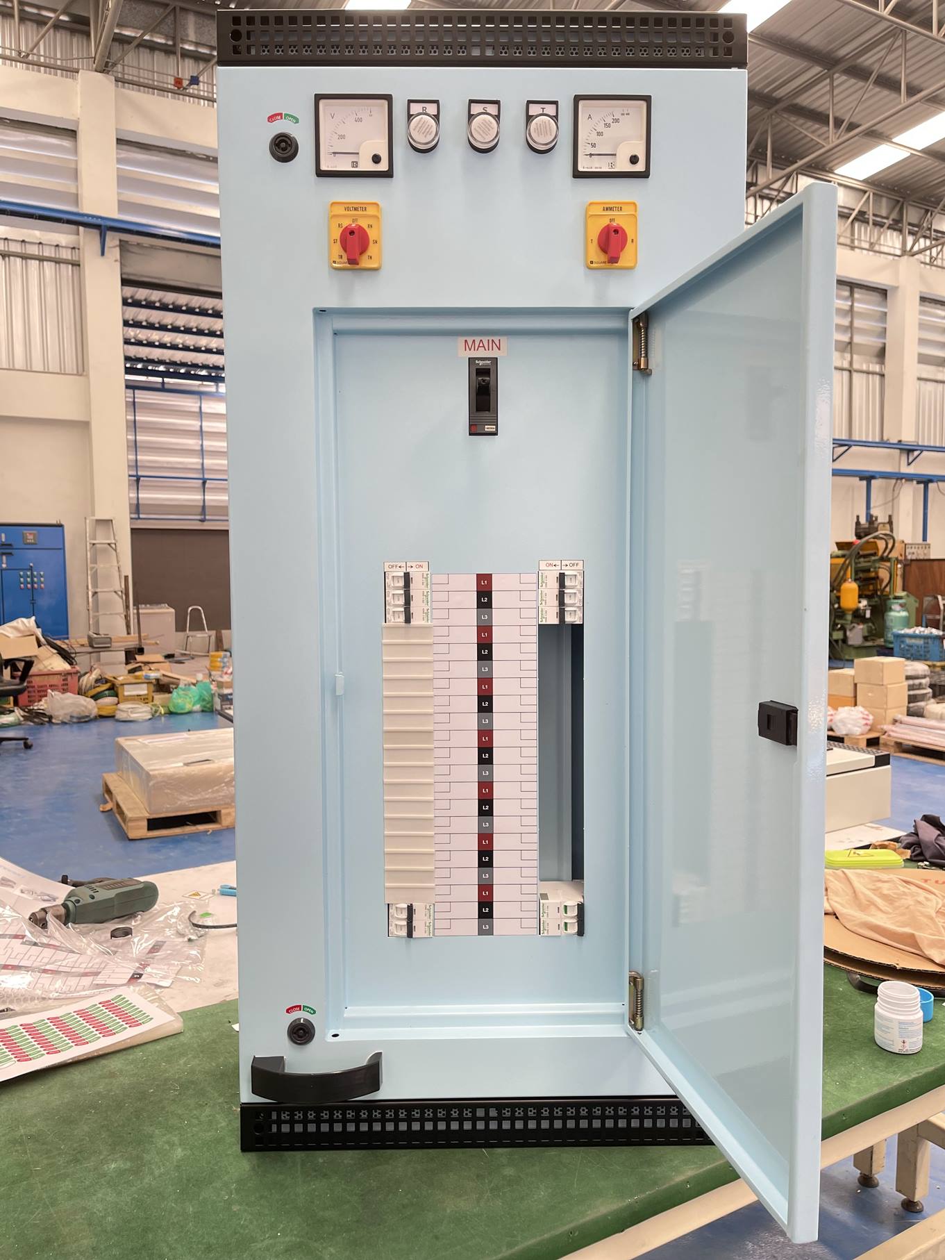ผู้ผลิตจำหน่ายตู้สวิตช์บอร์ด รับออกแบบผลิตตู้สวิทช์บอร์ด ตู้สวิทช์เกียร์ ตู้คอนโทรลตู้เปล่า ตู้โหลดเซ็นเตอร์ ตู้ฝาลอย เคสตู้คอนโทรลรูปแบบต่างๆ ทำสีระบบ Powder coating ตามแบบดรออิ้งโดยเฉพาะหรืองานออกแบบผลิต งานตู้คอนโทรลเหล็ก-สแตนเลส มิติและขนาดตรงตามสเปคที่ลูกค้าต้องการ ไม่มีขั้นต่ำ ราคาไม่แพง รับประกันคุณภาพ พร้อมบริการจัดส่งตู้ควบคุมไฟฟ้าทั่วประเทศไทย